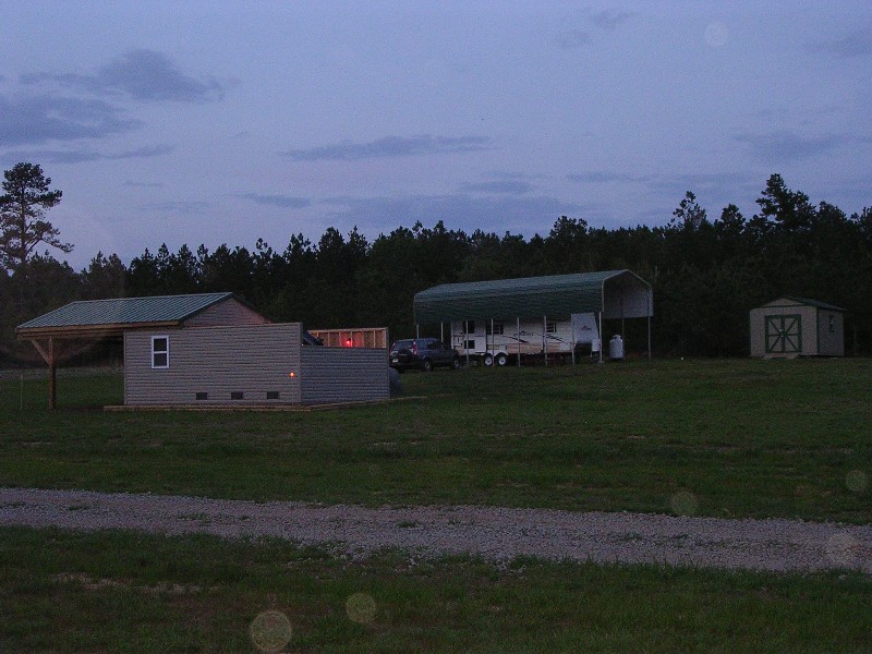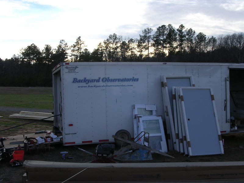 | Many different locations were tried over the course of several hours, but I was never quite happy with them. The problem was that there was a structure to the south that blocked about 7 degrees of the horizon. So I kept shifting the observatory site in order to minimize this obstruction, while at the same time, trying not to position it where it might impede any future development. However, after nightfall, a new location was formed in a matter of minutes that seemed to provide the best horizon with a reasonable capacity for future growth. As it turned out, the structure to the south had little to no impact on viewing and blended right in with the horizon in the dark. Therefore, I was able to locate the observatory exactly where I wanted it. What do they say about the "best laid plans..."? | |