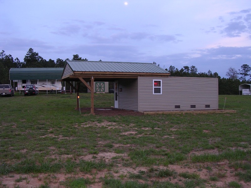 The observatory is a 16 x 20 foot roll-off roof observatory. The concrete floor was poured by Lannae Construction of Washington, Georgia. The observatory was built by Backyard Observatories of Lodi, Ohio. The House of Stars is equipped with a Celestron CGE C-1400 Schmidt-Cassegrain telescope, a TScope 14" truss tube Dobsonian telescope, and a Coronado Personal Solar Telescope along with other astronomy gear. It has wireless internet access along with a state of the art security system and a not so high tech system (i.e., watchful neighbors and buckshot). It is located out in the middle of east nowhere. On a given visit, you might see a wild turkey, a wild hog, a deer, or a rattlesnake. But if the weather cooperates, you will see one of the prettiest skies in the Southeastern USA.