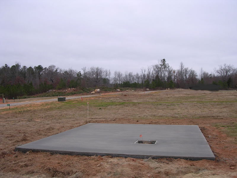 The next morning, I walked outside and this is what I saw. The slab turned out very well. Way to go Lamont and crew! The 2 x 2 hole in the southeast side of the slab was left so that a concrete pier could be constructed when the observatory was built. |